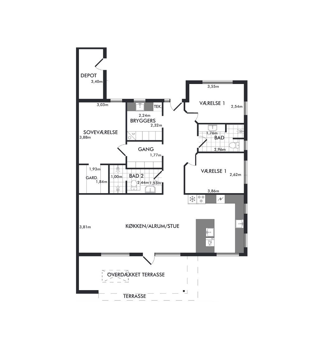 3 + stue